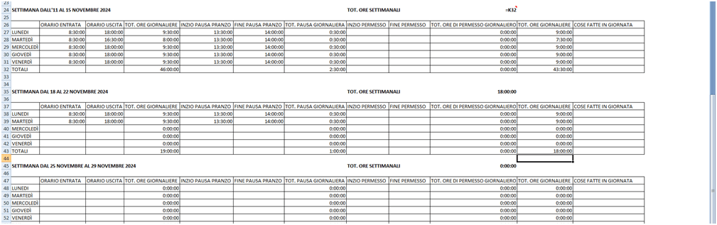 Se si vuole utilizzare la funzione “SOMMA” per fare l’addizione di più orari, come, per esempio, sommare le ore di lavoro svolte, come l’immagine che segue: