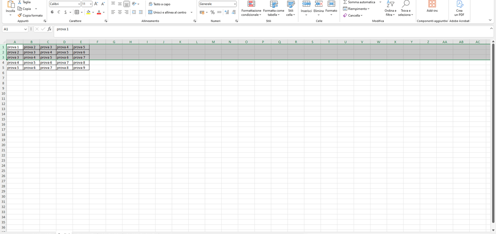 Con il primo metodo, partendo da un foglio excel come questo